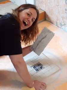 A few months ago the office team, Kim and Erin, went for a two-day Innovation Workshop run by Schluter Systems. Half of the time was spent in class, and the other in the workshop, waterproofing makeshift showers and installing Schluter products.
