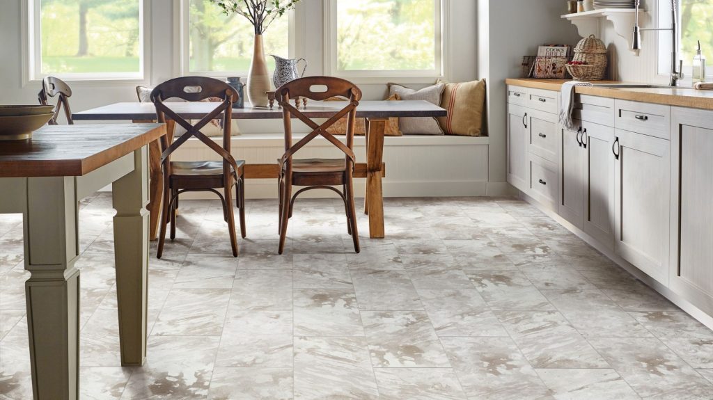 Alterna is also very forgiving. Even though it often has a stone look to it, it is slightly softer. if you were to drop something onto the floor there isn’t a guarantee that it will shatter. With a ceramic floor, your belongings are much more likely to break upon impact. Alterna is also highly water resistant, further proving how fantastically it works in a bathroom, laundry room, or kitchen.