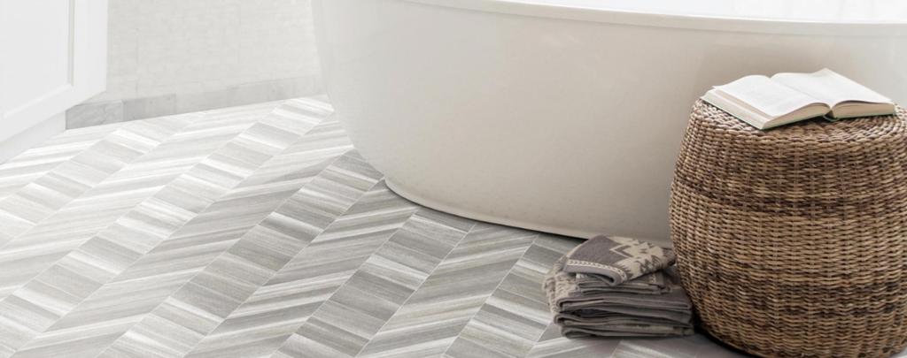 Sheet vinyl is perfect for bathrooms! It is waterproof and incredibly slip resistant. As opposed to a ceramic or porcelain tile that is typical for a bathroom floor, Sheet vinyl is much warmer and softer underfoot. Most bathrooms are not larger than 12′ in any one direction, so that makes sheet vinyl a perfect fit. If you chose to glue down your vinyl, you’d need to seal around your toilet and shower/bathtub to protect your subfloor. With these things in mind, you can find sheet vinyl for any bathroom!