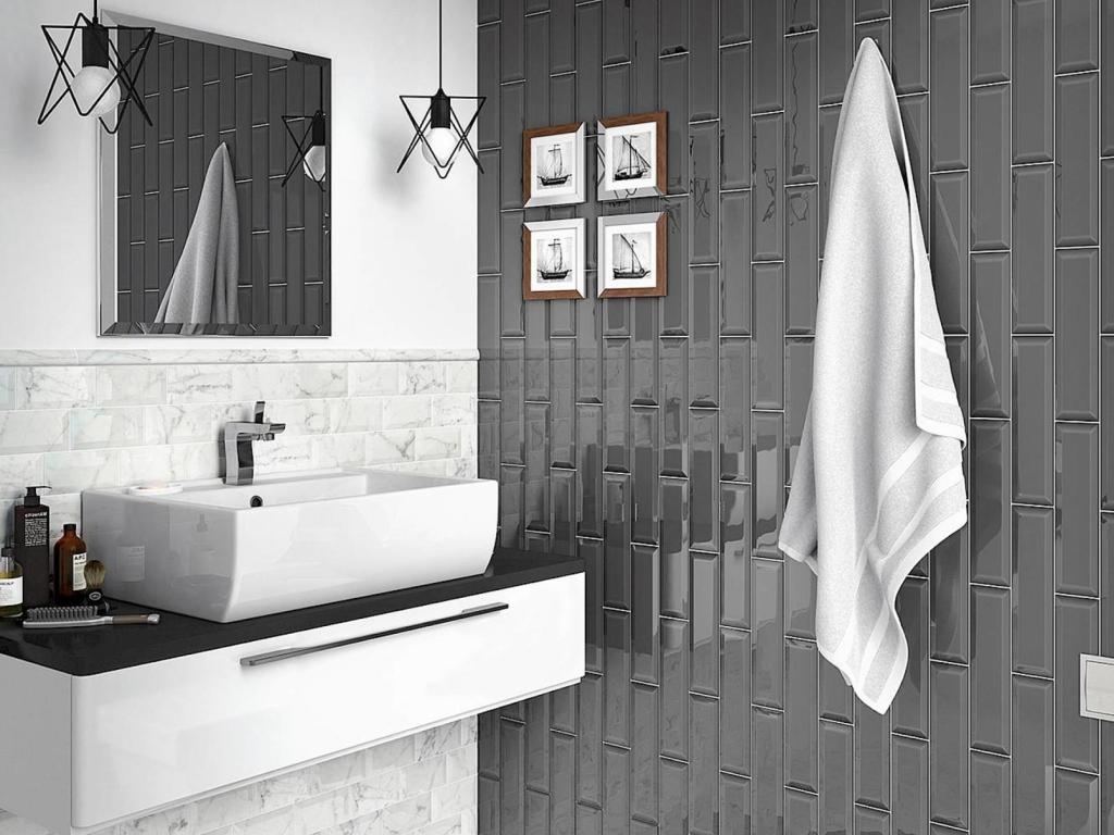 Centura’s Metro collection in colour Dark Grey offers a rectangular tile in a Step Ladder layout. This pattern makes your walls look taller than they are.