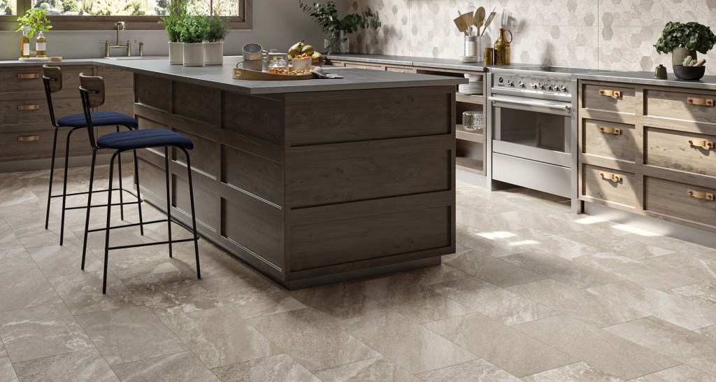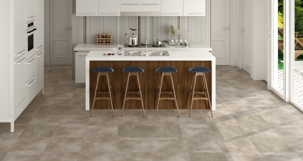 Glue down, or float. Grout, or no grout. Vinyl tile is a great choice for kitchens.